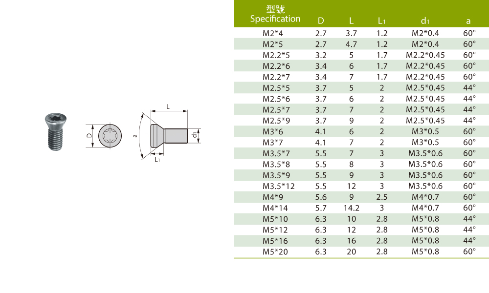 | Clamp Screws For Turning Tool Holder 車刀刀片螺釘 |