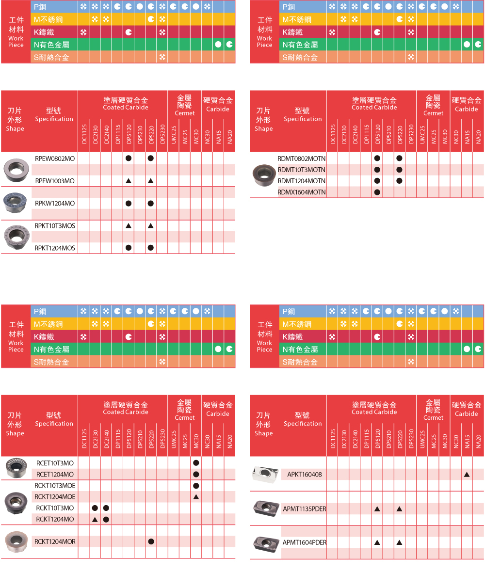 | Insert Grades - Milling 銑刀片牌號(hào)一覽表 |