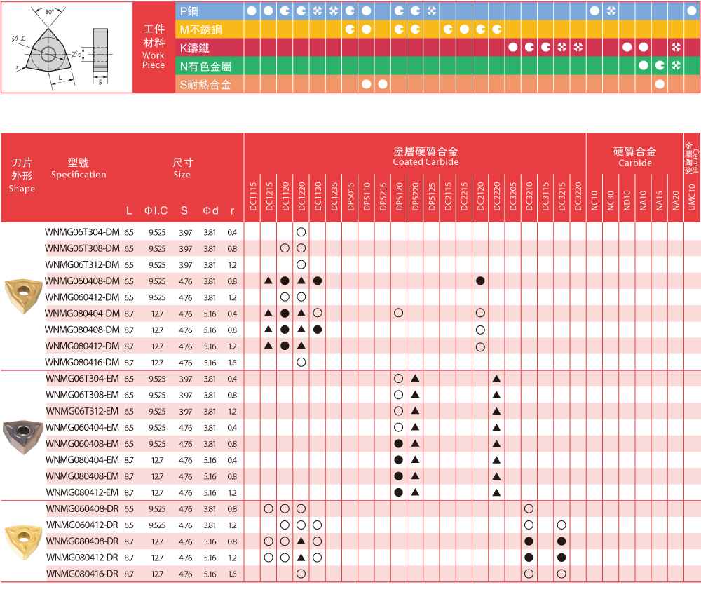| Insert Grades - Turning 車削刀片牌號(hào)一覽表 |