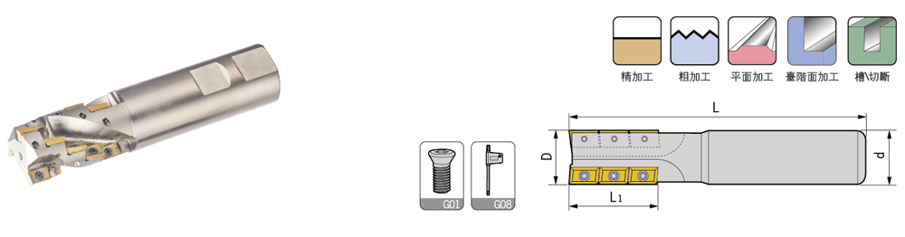 · DP高性能通用加工立銑刀 · DG通用加工立銑刀 · DH高硬度加工立銑刀 · DL鋁加工立銑刀 |