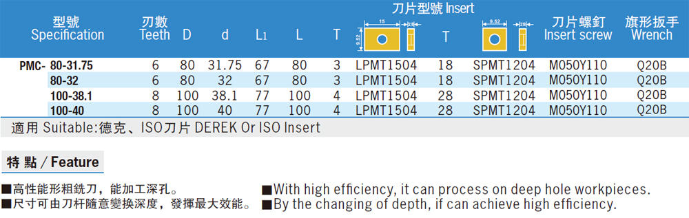 | PMC Shell Cutter For Roughing PMC殼式粗切削端銑刀 |