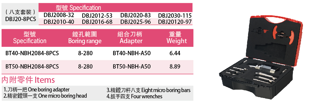 · 粗鏜刀 · 精鏜刀 · 精鏜套裝 · 鏜頭刀柄 |